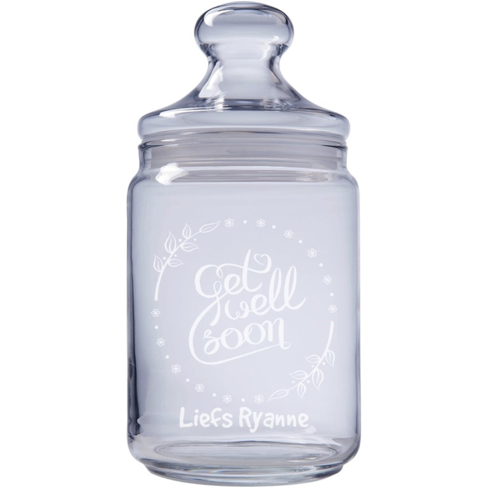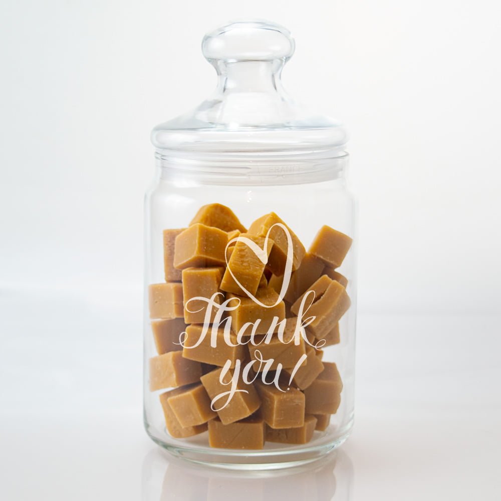 Die Gravur eines Bonbonglases ist eine tolle Möglichkeit, Ihrer Einrichtung eine persönliche Note zu verleihen. Das Bonbonglas hat ein Fassungsvermögen von 1 Liter und einen Deckel aus Glas mit Glasgriff und Gummidichtungsrand. Das Design ist in Weiß eingraviert. Dieses Bonbonglas ist aus dickem Glas gefertigt und hat einen dickeren Boden, so dass es stabil genug ist, um für eine lange Zeit dauern.